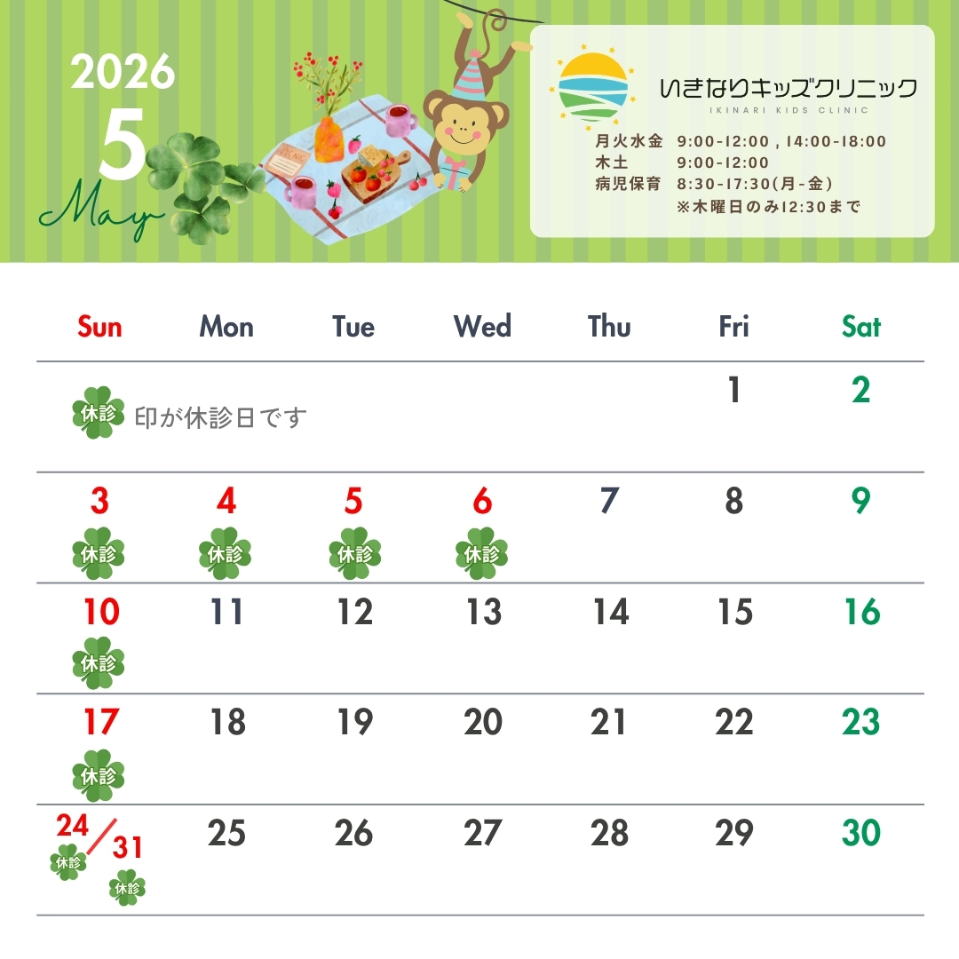🎏🌿 26年5月の診察スケジュールのお知らせ